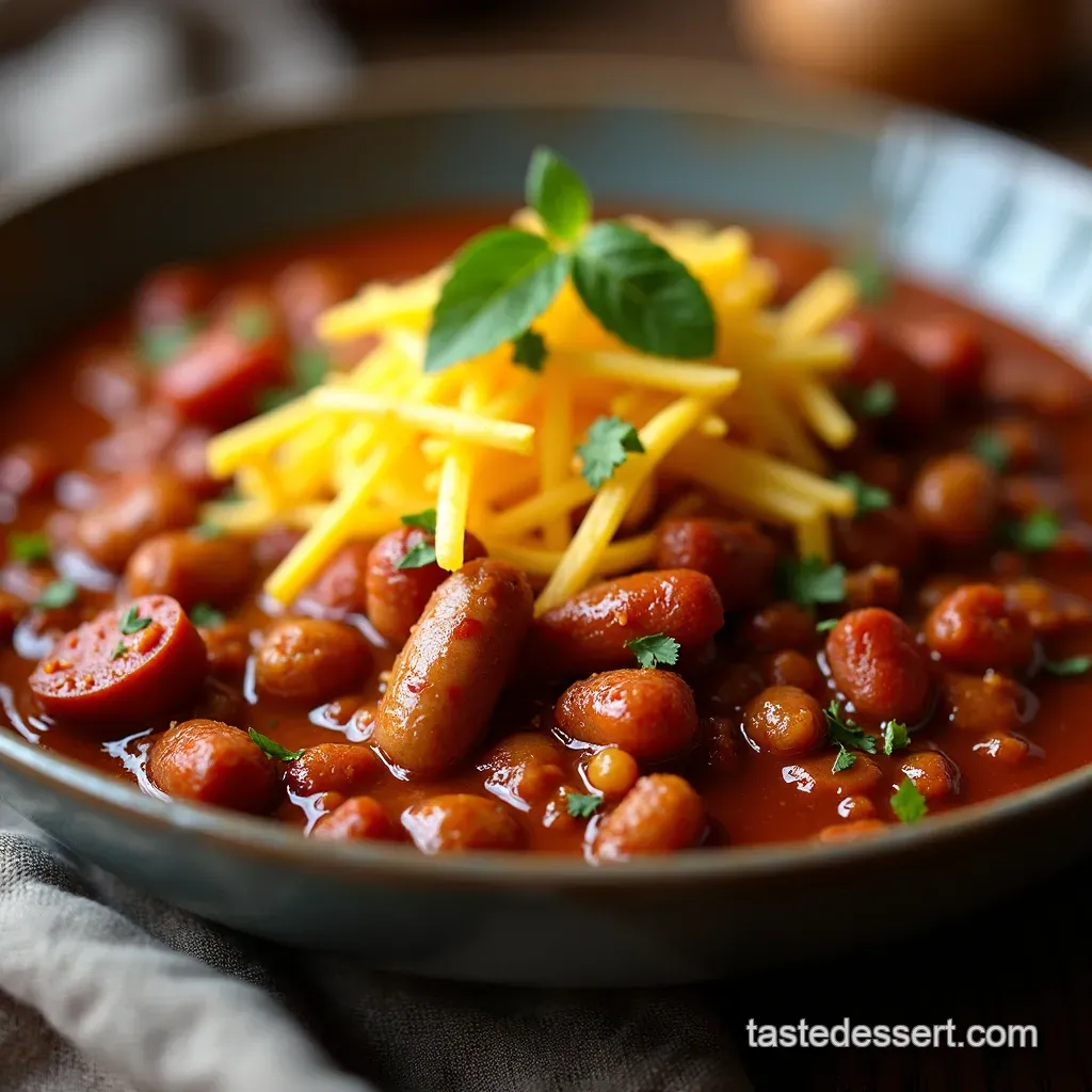 Okay, let's get this chili cooking with some top-notch ! Get ready for a Banger Chili Mash-Up . It's a comfort food chili with a British twist.