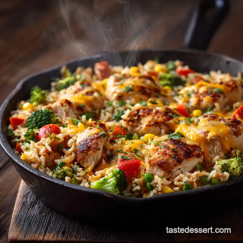 The Ultimate One-Pan Weeknight Wonder: Skillet Cheesy Chicken and Veggie Rice