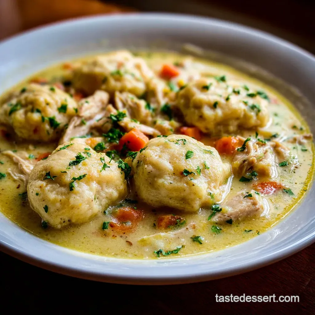 - Flavor/Texture Hook: Velvety cream sauce with buttery, flaky dumplings
