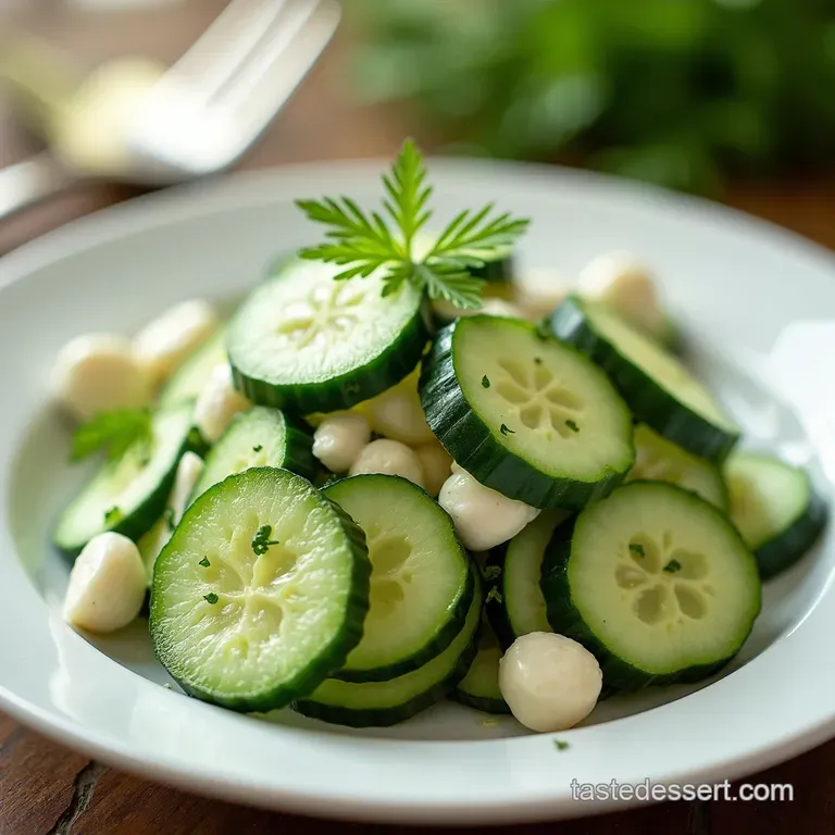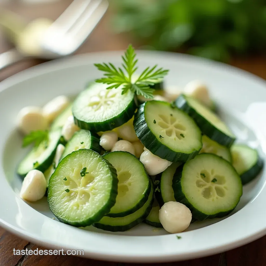 This cucumber salad isn't just a taste sensation; it's a looker too. For plating, think fresh and vibrant. Serve it in a pretty bowl.