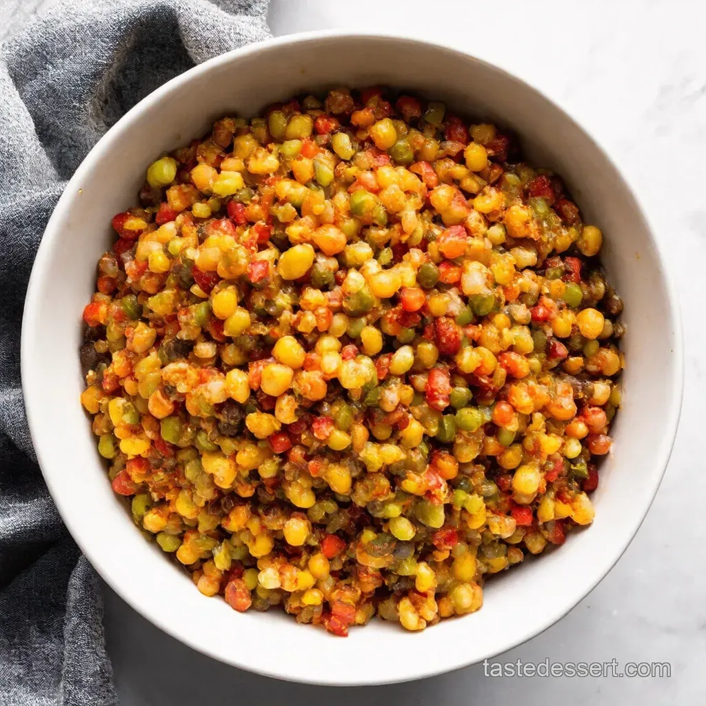 - Combine Ingredients: In a large bowl, mix 1 (15-ounce) can black eyed peas , 1 (15-ounce) can black beans , 1 (15-ounce) can sweet corn , and all the diced veggies.