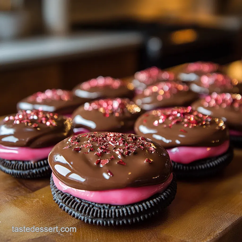 Plating is everything, isn't it? Don’t just pile them on a plate. For a proper "wow" factor, arrange your valentine oreos chocolate dipped treats on a slate or a lovely white platter.