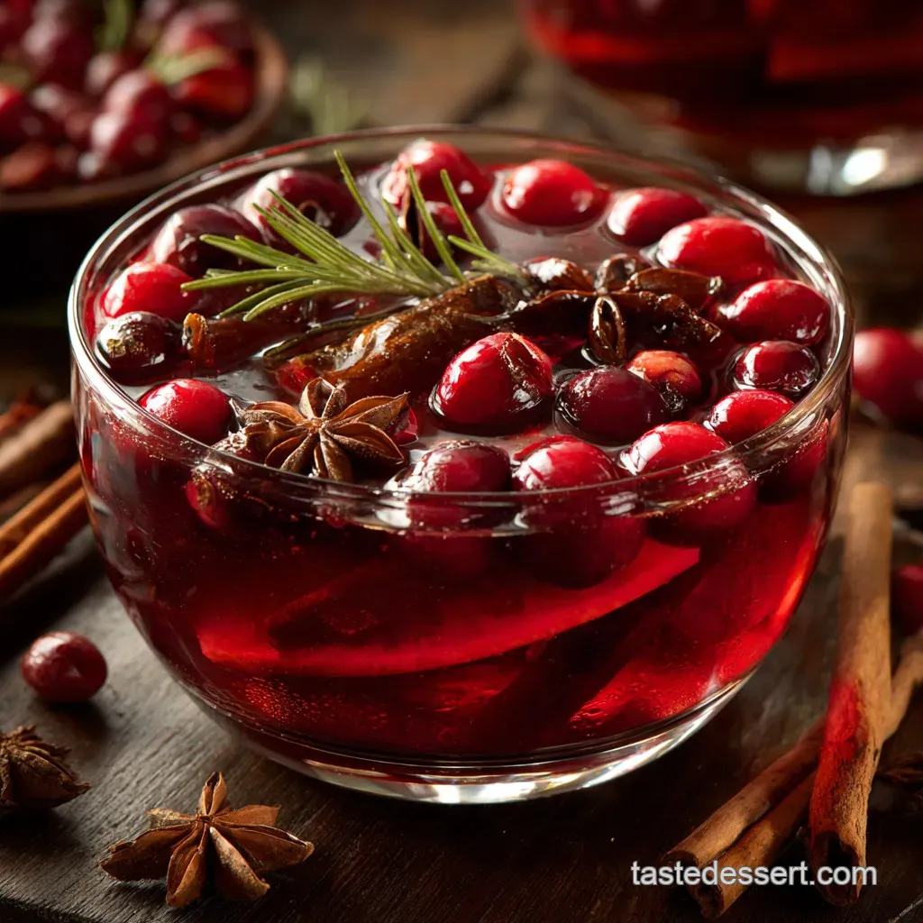 Garnishing is half the fun! Float whole, fresh cranberries and thinly sliced orange wheels in the bowl; they look stunning against the ruby liquid. A few rosemary sprigs tucked around the ice block add a wonderful piney aroma, making the whole table smell fantastic.