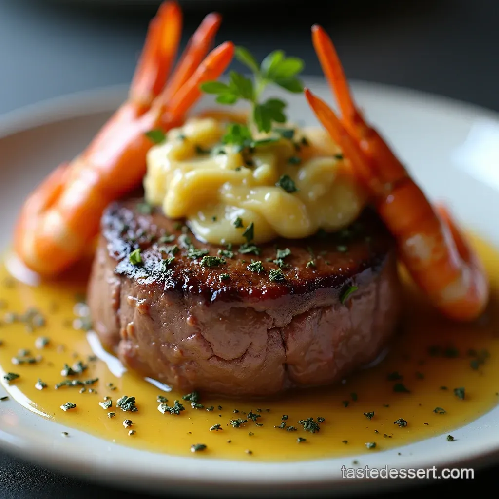 The unifying element in this dish is the homemade Lemon Herb Compound Butter. Softened butter acts as a perfect vehicle for sharp lemon zest, fresh parsley, chives, and garlic. As this cold disc melts over the piping hot steak and Surf And Turf Shrimp , it creates an instant, luxurious pan sauce that ties the 'land' and 'sea' components together with a bright, herbaceous finish.