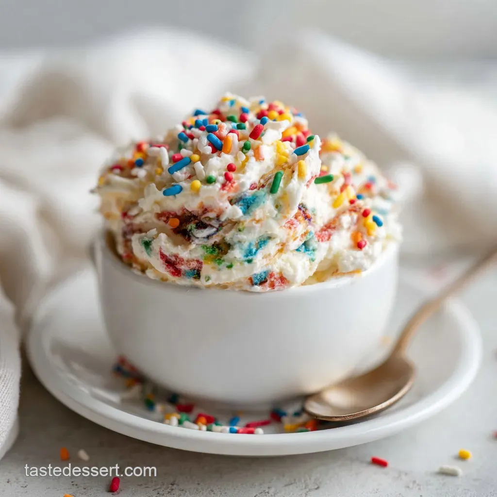 This makes the funfetti dip colorful party dessert dip look like a professional mousse and prevents the "double dipping" drama at a crowded table.