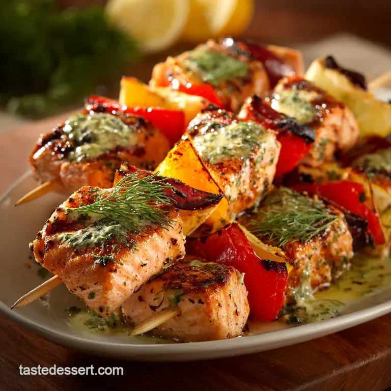 Grilled Salmon Kebabs Bright Mediterranean Skewers with Lemondill Glaze