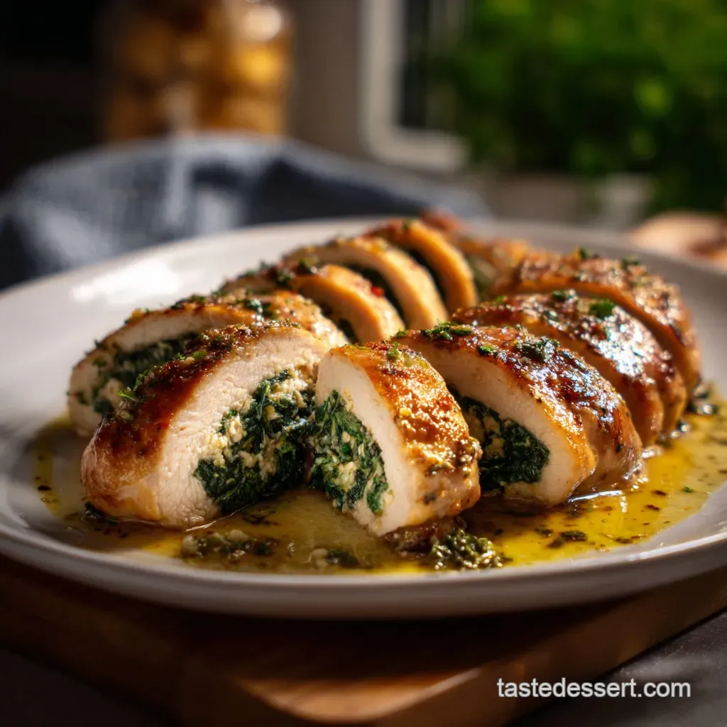 Remove the dish from the oven and let the chicken rest for 5 minutes. This is non-negotiable! Resting allows the juices to redistribute, ensuring you get a perfectly moist, succulent Spinach Stuffed Chicken Breast every time.