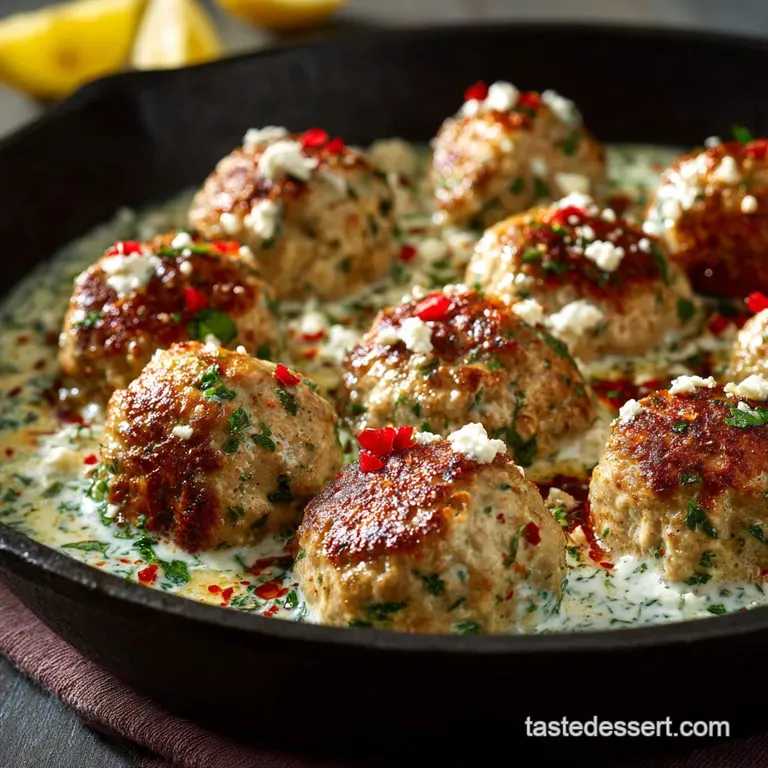 Greek Turkey Meatballs: Lemony Keftedes with Cooling Feta Yogurt Dressing