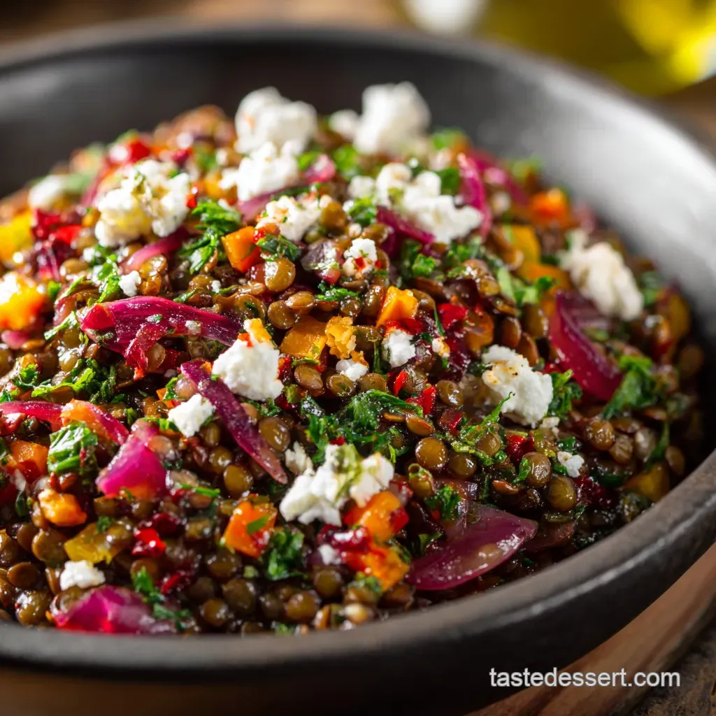 Chef’s Note: If you want that classic savory Mediterranean flavor, don't forget the feta. Crumbled [lentil salad with feta] adds a salty, creamy counterpoint to the sharp acid and earthy lentils. It’s optional, but highly recommended.
