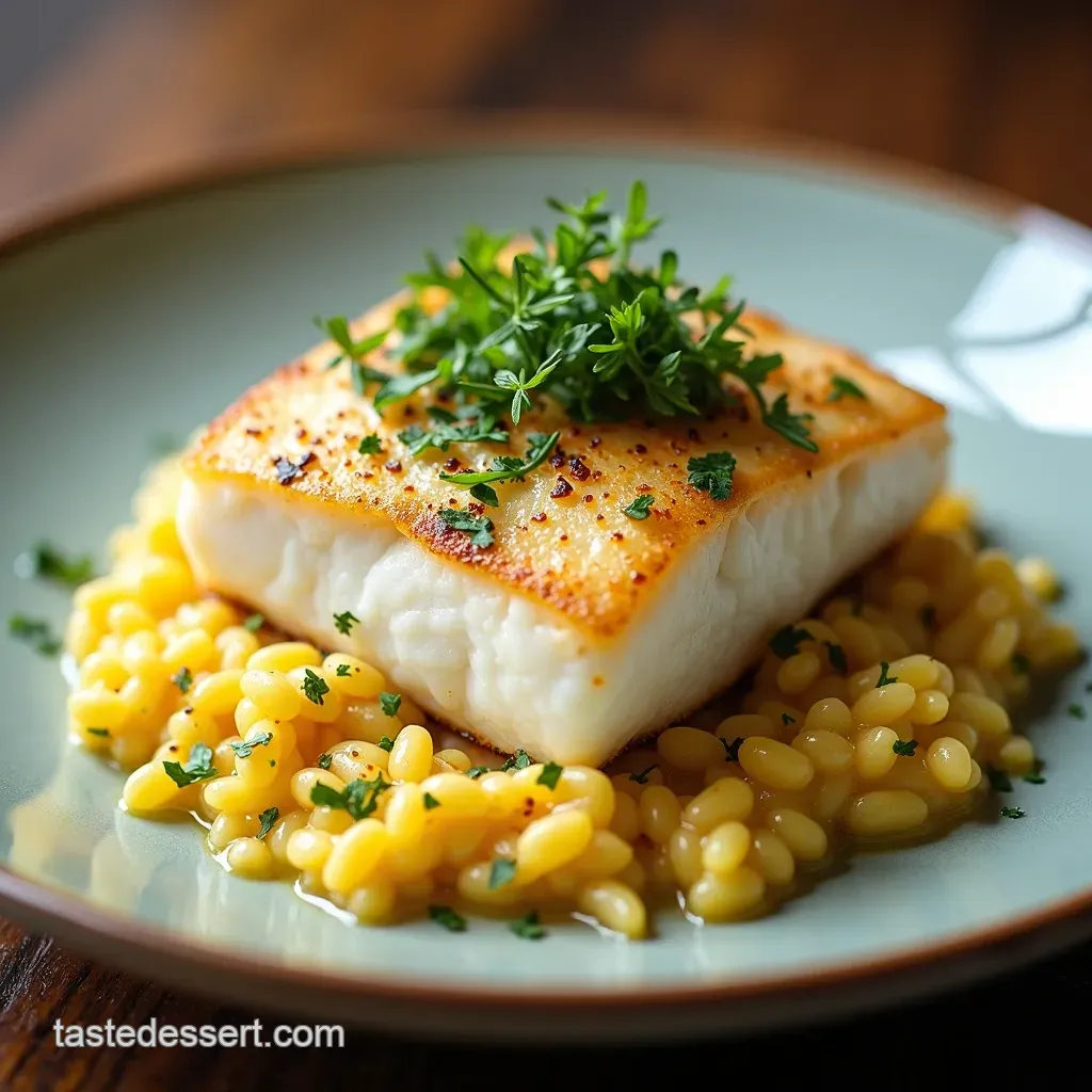 Ever wondered how to whip up restaurant quality seafood at home ? This Pan-Seared Halibut Recipe does just that. We're talkin' flaky halibut with risotto , slathered in a dreamy lemon dill sauce.