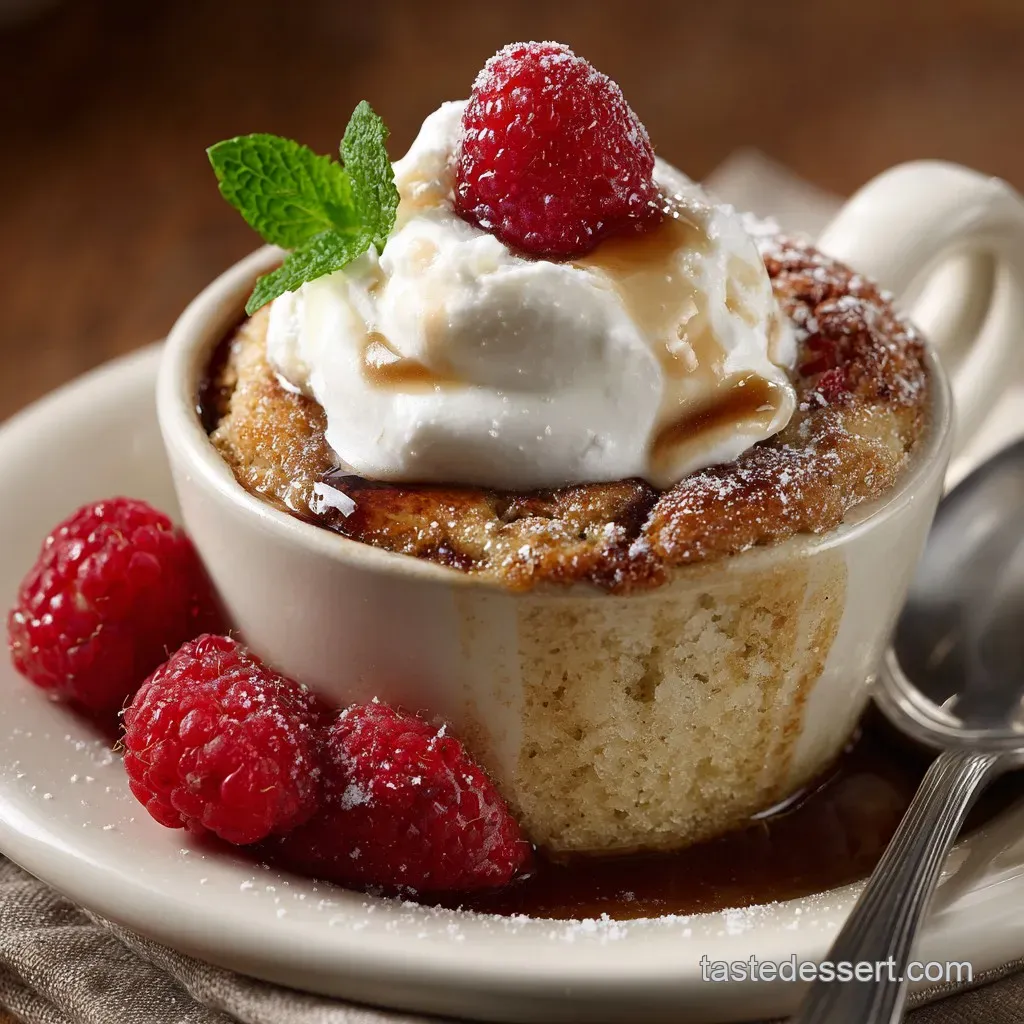 Serving this warm dessert directly from the mug is the way to go. Immediately after its minute rest, the cake is crying out for toppings. A generous scoop of quality vanilla bean ice cream that begins to melt down the sides is the classic choice.