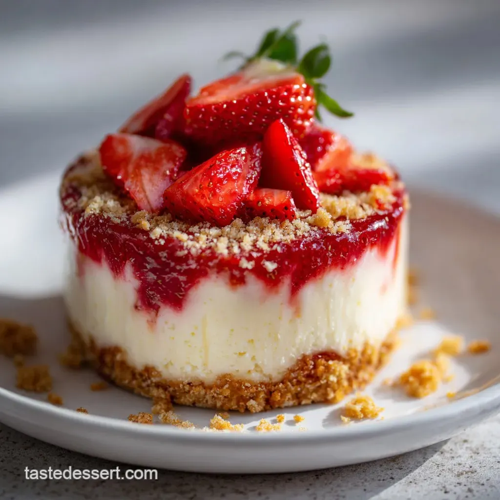 Chef's Tip: If you find your crunch topping isn't sticking, lightly brush the top of the chilled cheesecake with a thin layer of warmed strawberry jam before pressing the crumbs on. It acts like "glue."