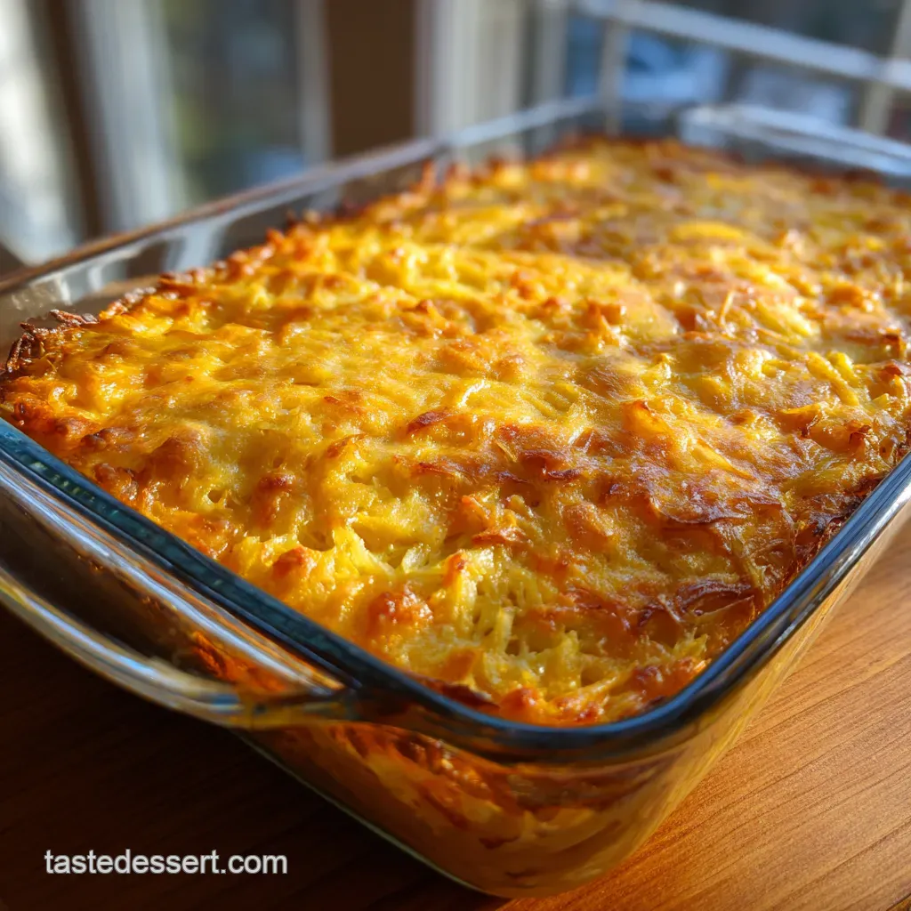 Pour the mixture into your prepared dish. Sprinkle the remaining half cup of cheese on top. If you want that classic crunch, mix 1 cup of crushed cornflakes with 2 Tbsp melted butter and scatter that over the top (the optional Hash Brown Casserole Cornflake Topping ).