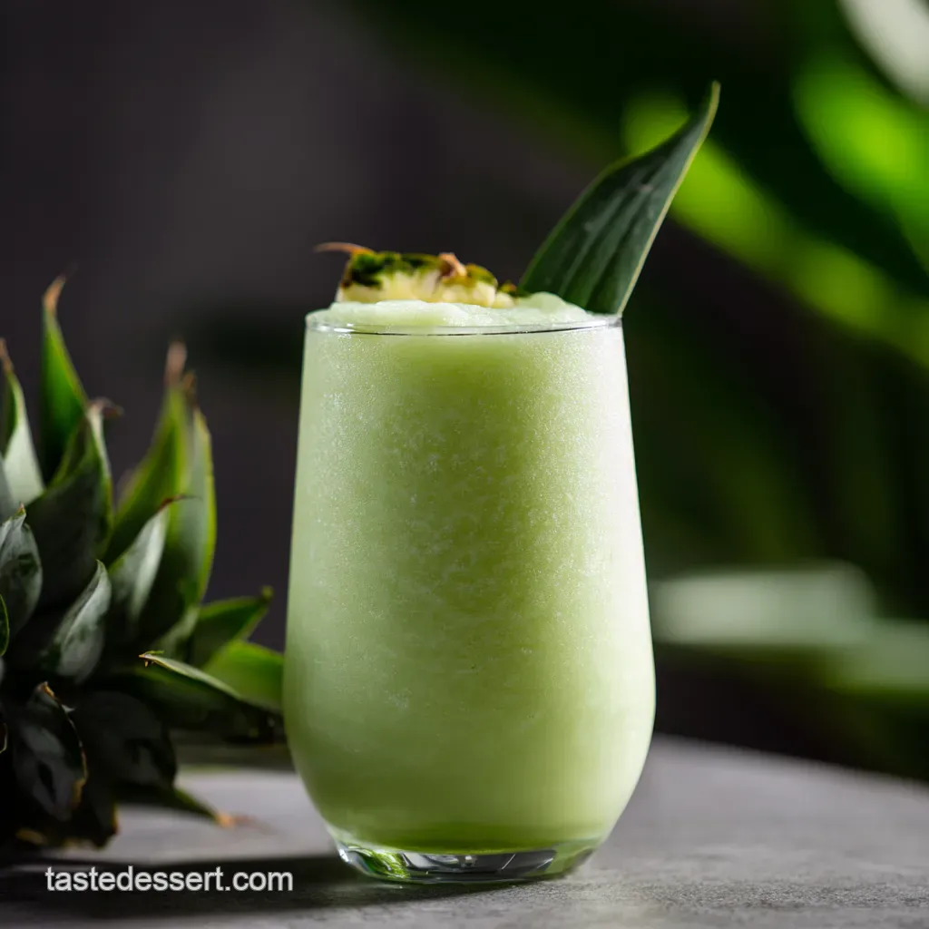 - Pour into chilled glasses and garnish with a pineapple wedge! Serve immediately.
