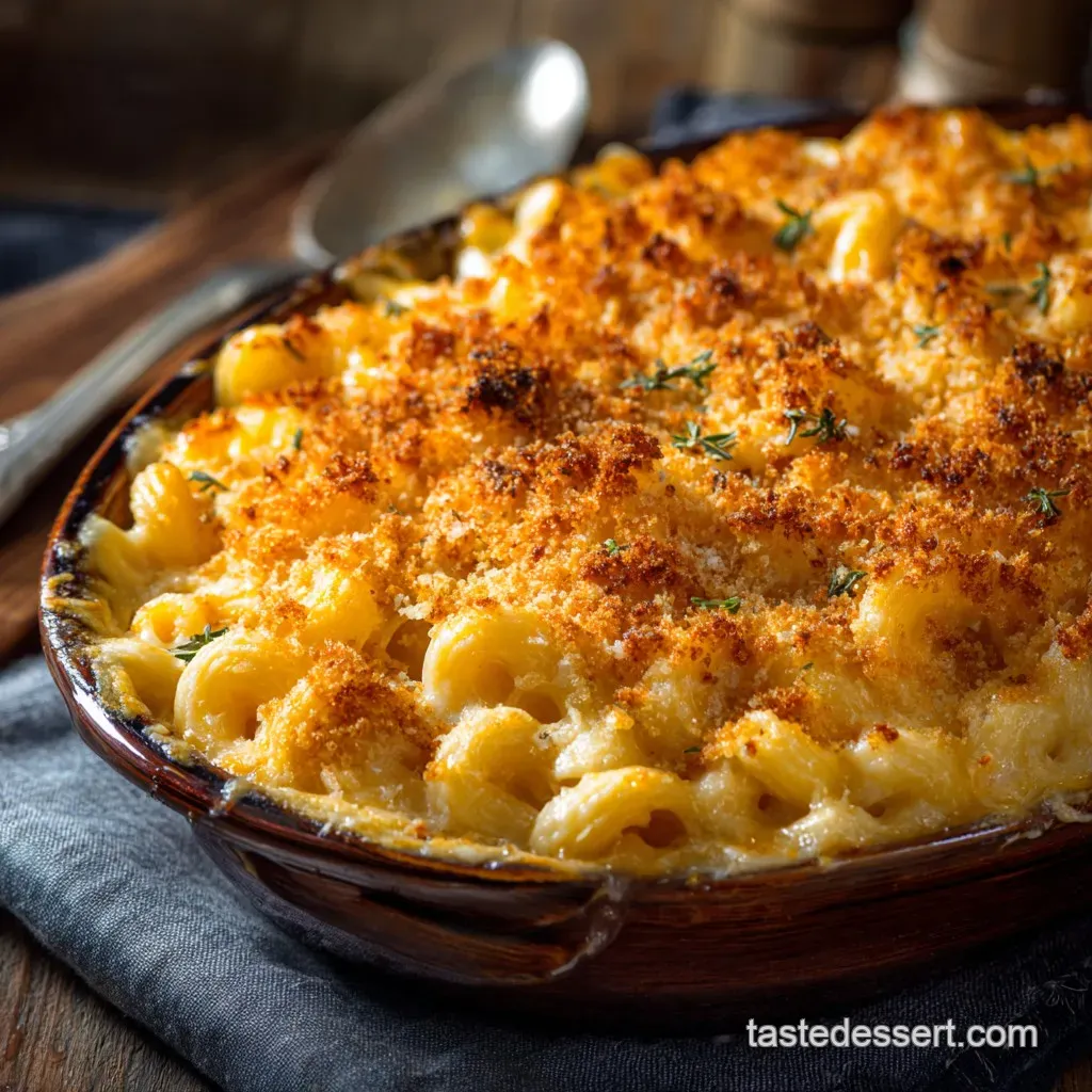 A quality Mac And Cheese Casserole requires a structural top layer that provides essential textural contrast to the creamy interior. Our method combines crisp Panko breadcrumbs with grated Parmesan and melted butter for a robust and crunchy lid.