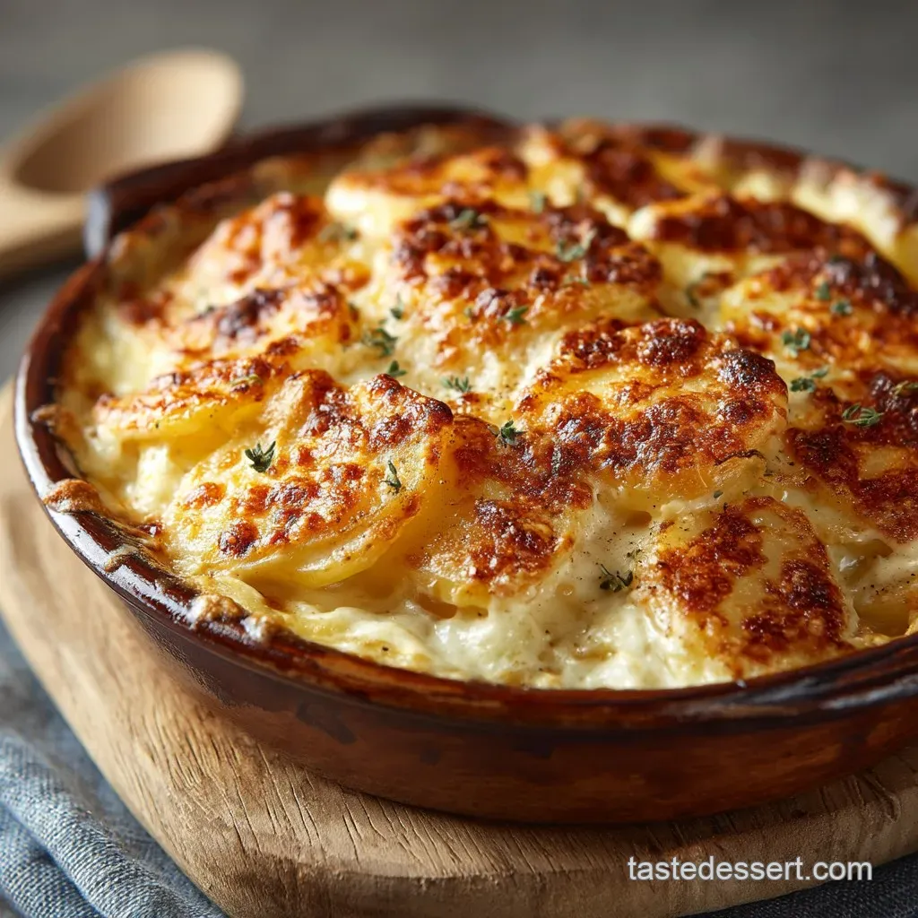 While the classic preparation is unparalleled, the structure lends itself well to delicious customization. For a heartier dish, sauté 100g of smoked bacon lardons and sprinkle them between the layers, creating a magnificent scalloped potatoes and ham profile. For a herbaceous twist, infuse the simmering milk with fresh thyme and a bay leaf, removing the bay leaf before layering. If you want to cut down on starch, substitute half the potato volume with thinly sliced celeriac or parsnip for a root vegetable gratin that retains the creamy texture but offers a different earthy note.