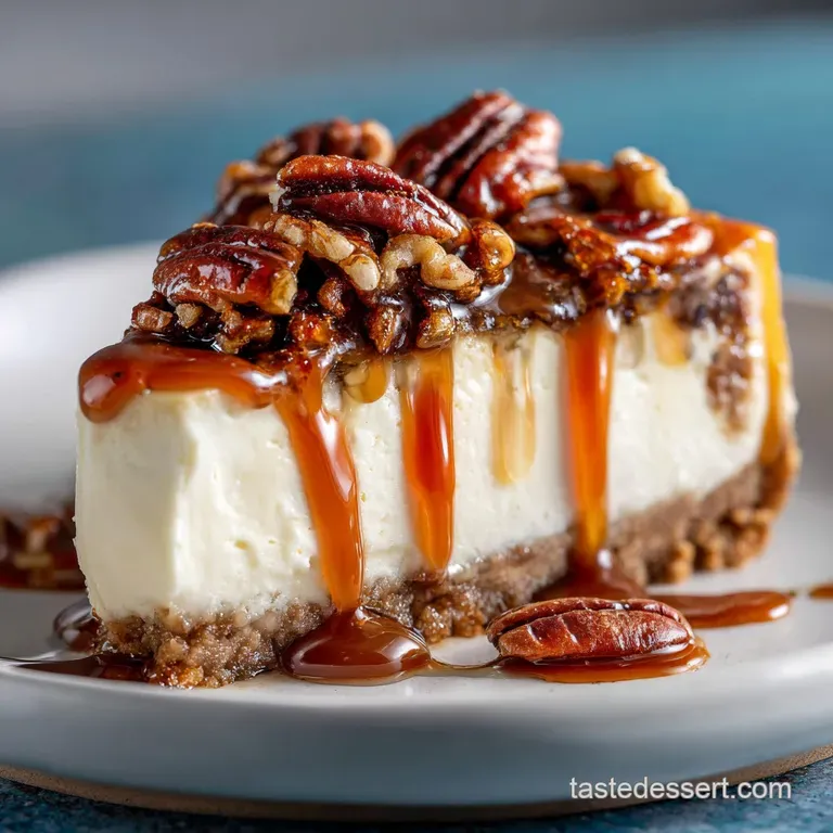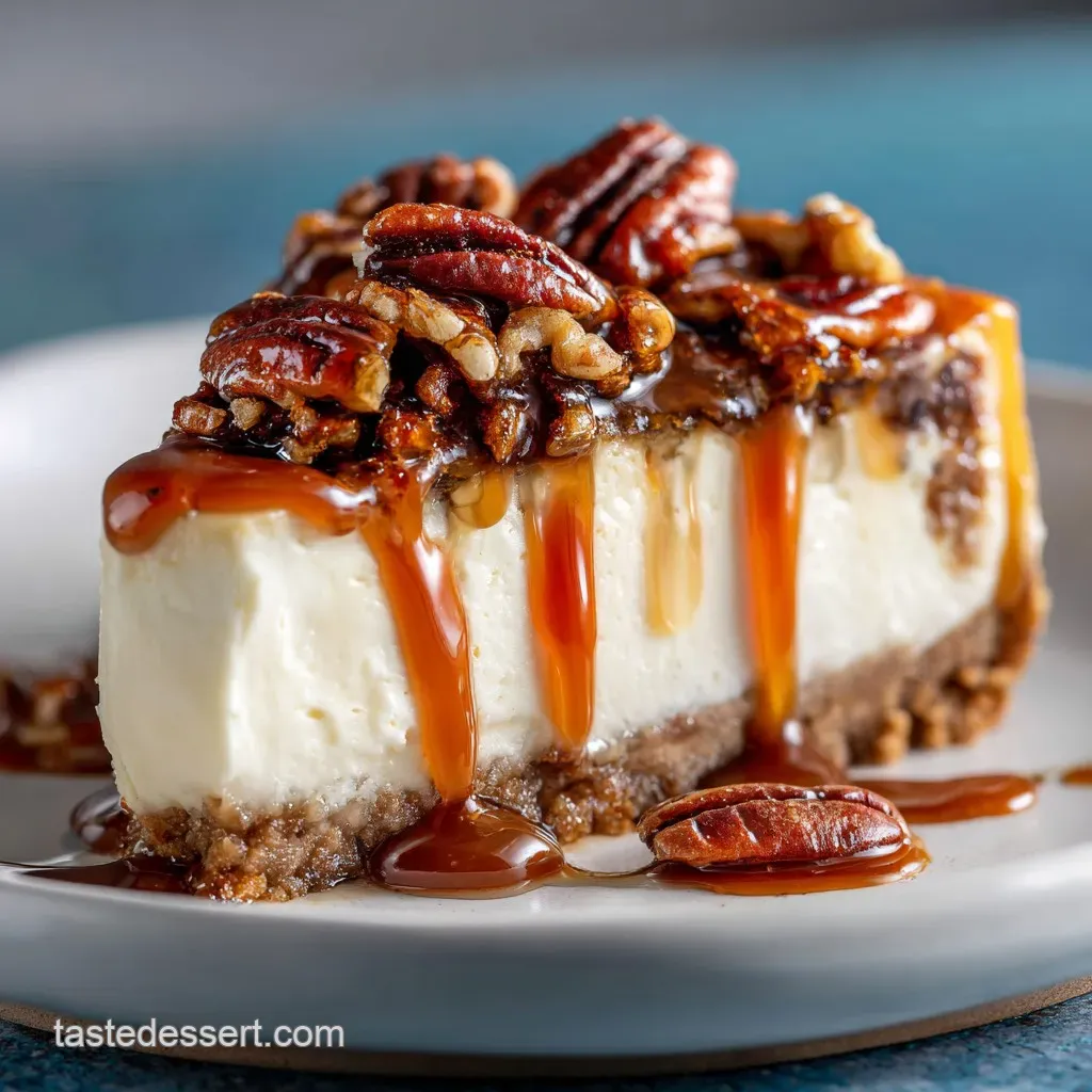 Its textural complexity and the intense layering of three distinct toppings. Unlike a plain cheesecake, the combination of the chocolate graham crust, the gooey caramel, and the crunchy pecans creates an experience greater than the sum of its parts.